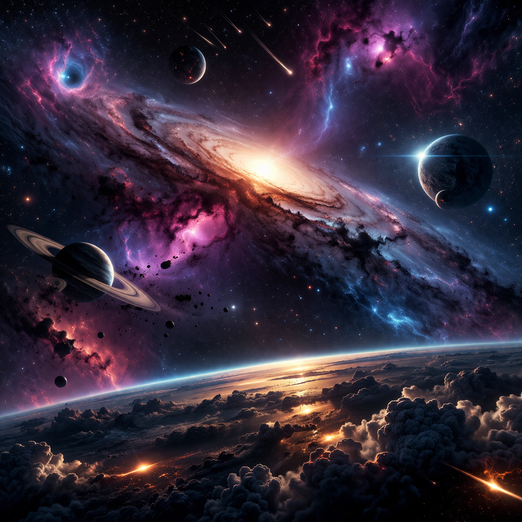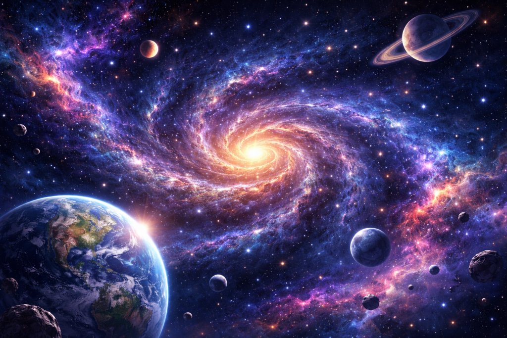 One of my greatest interests is the Universe. I’m fascinated by how vast and mysterious the cosmos is. According to scientific theory, it all began with a massive explosion called the Big Bang. The universe is approximately 13.8 billion years old and is constantly expanding at an accelerated rate. It consists primarily of mysterious dark energy and dark matter, with visible matter (stars and planets) making up only a fraction of the total. It’s estimated that there are over 2,000 billion galaxies, and there are more stars than there are grains of sand on Earth.